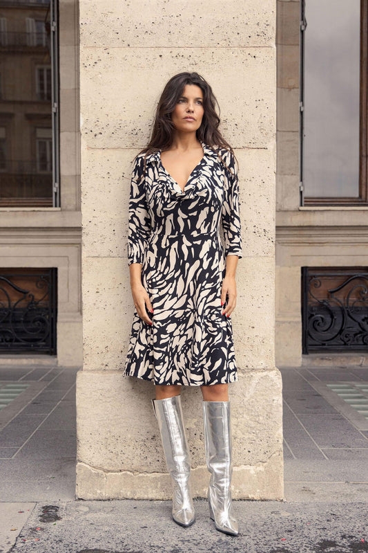 Entdecken Sie unsere Kollektion schwarz-weiß gemusterter Kleider, eine faszinierende Mischung aus Kontrasten und Eleganz. Mit über 20 einzigartigen Stilen ist unser Sortiment darauf ausgelegt, jede Silhouette mit der perfekten Balance aus Raffinesse und Modernität zu beeindrucken und aufzuwerten.