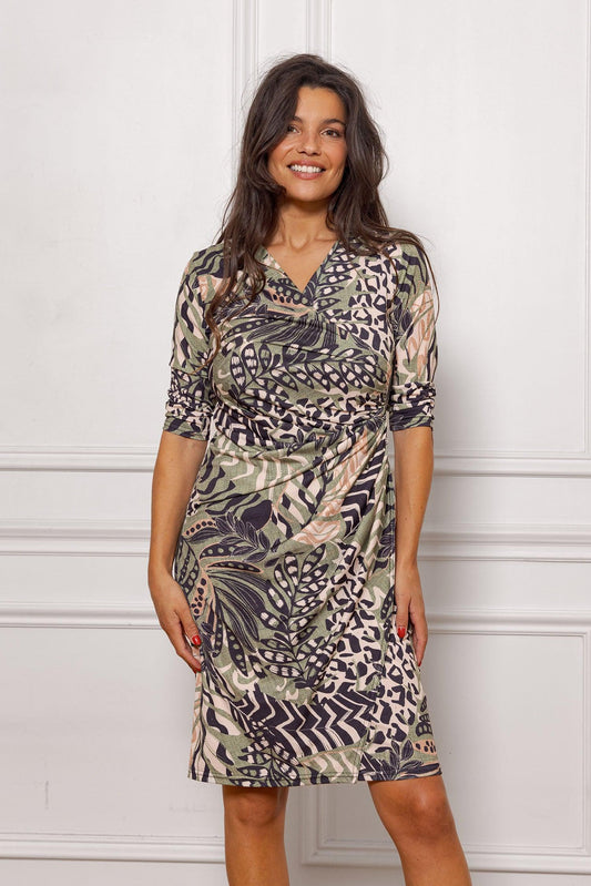 €59,00€47,20Ophée Khakifarbenes Wickelkleid mit Tierfellmuster