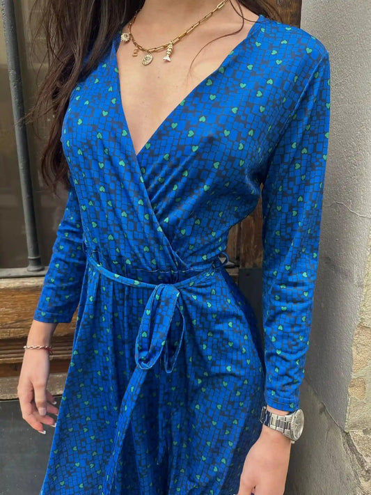 SaleLanges Wickelkleid in Blau und Rot von Story