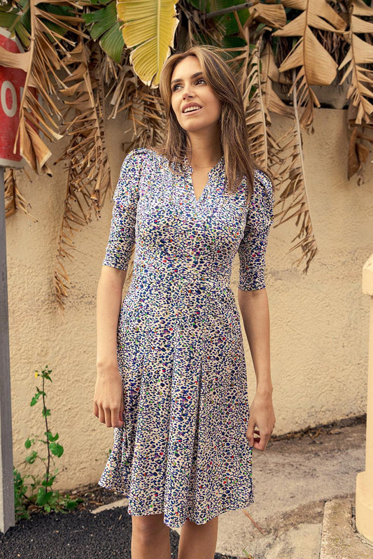 Tauchen Sie ein in unsere farbenfrohe Welt und entdecken Sie unsere Kollektion an Kleidern mit Arty-Muster.
