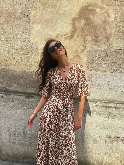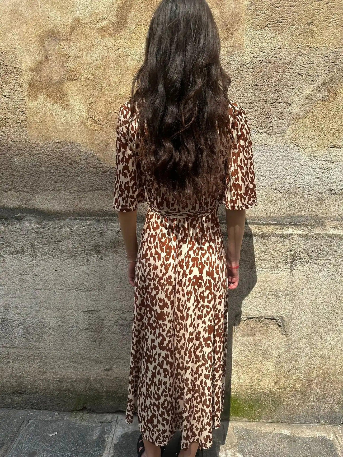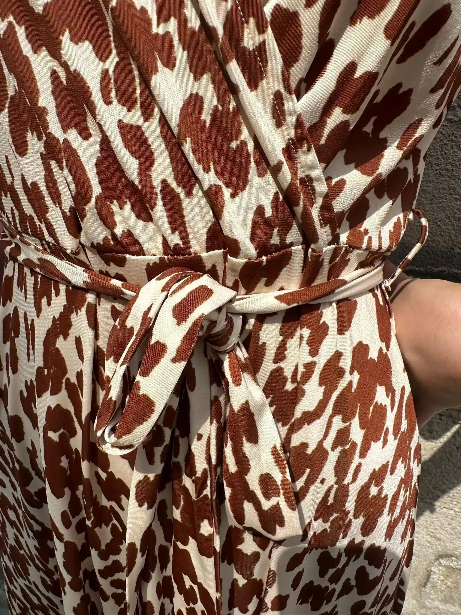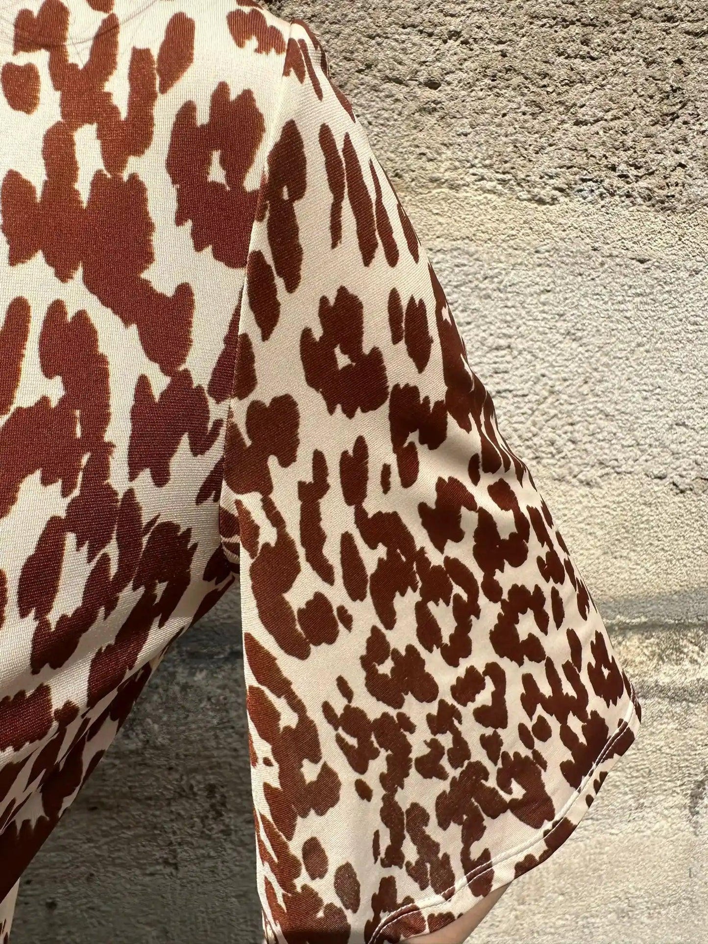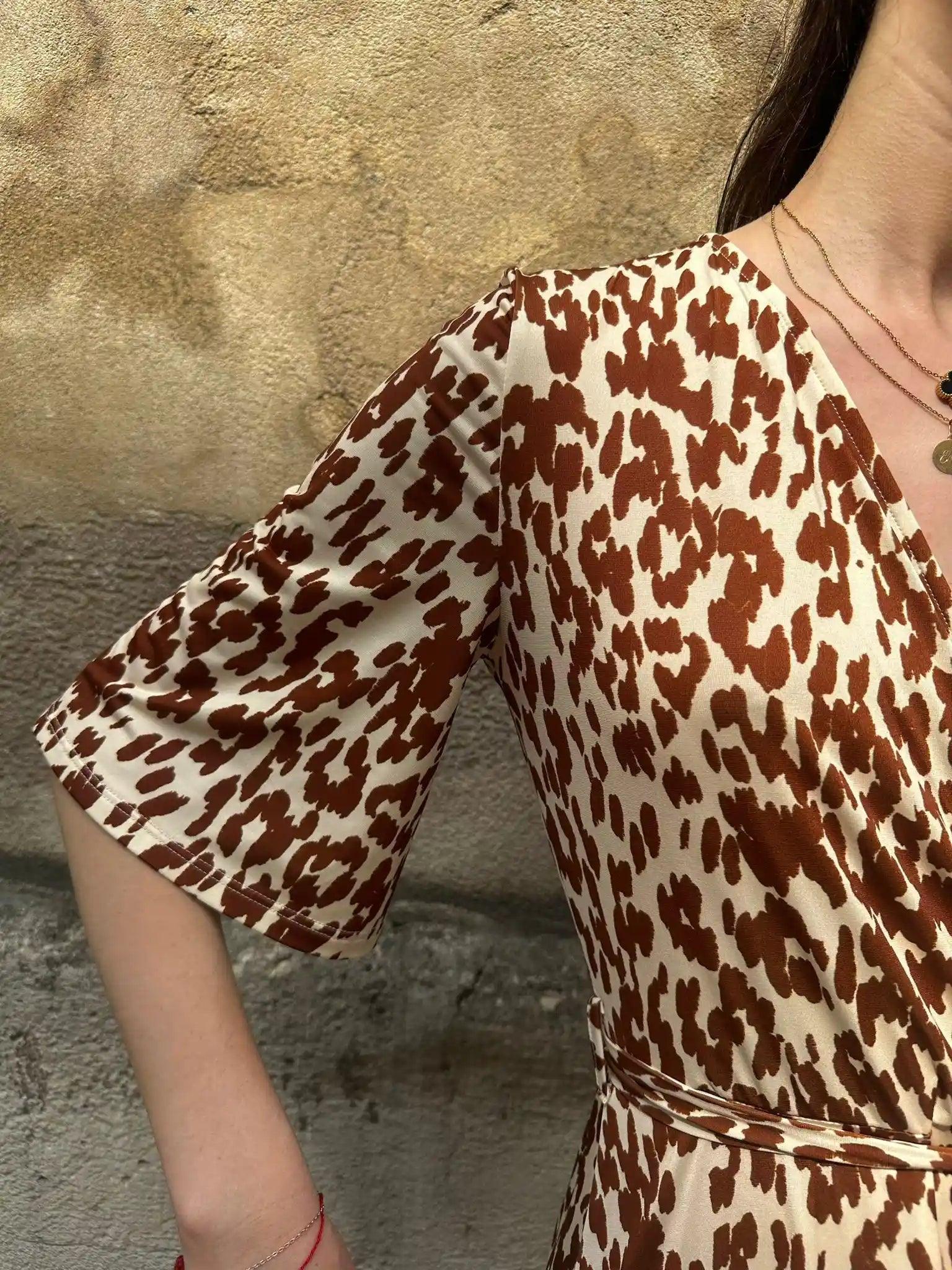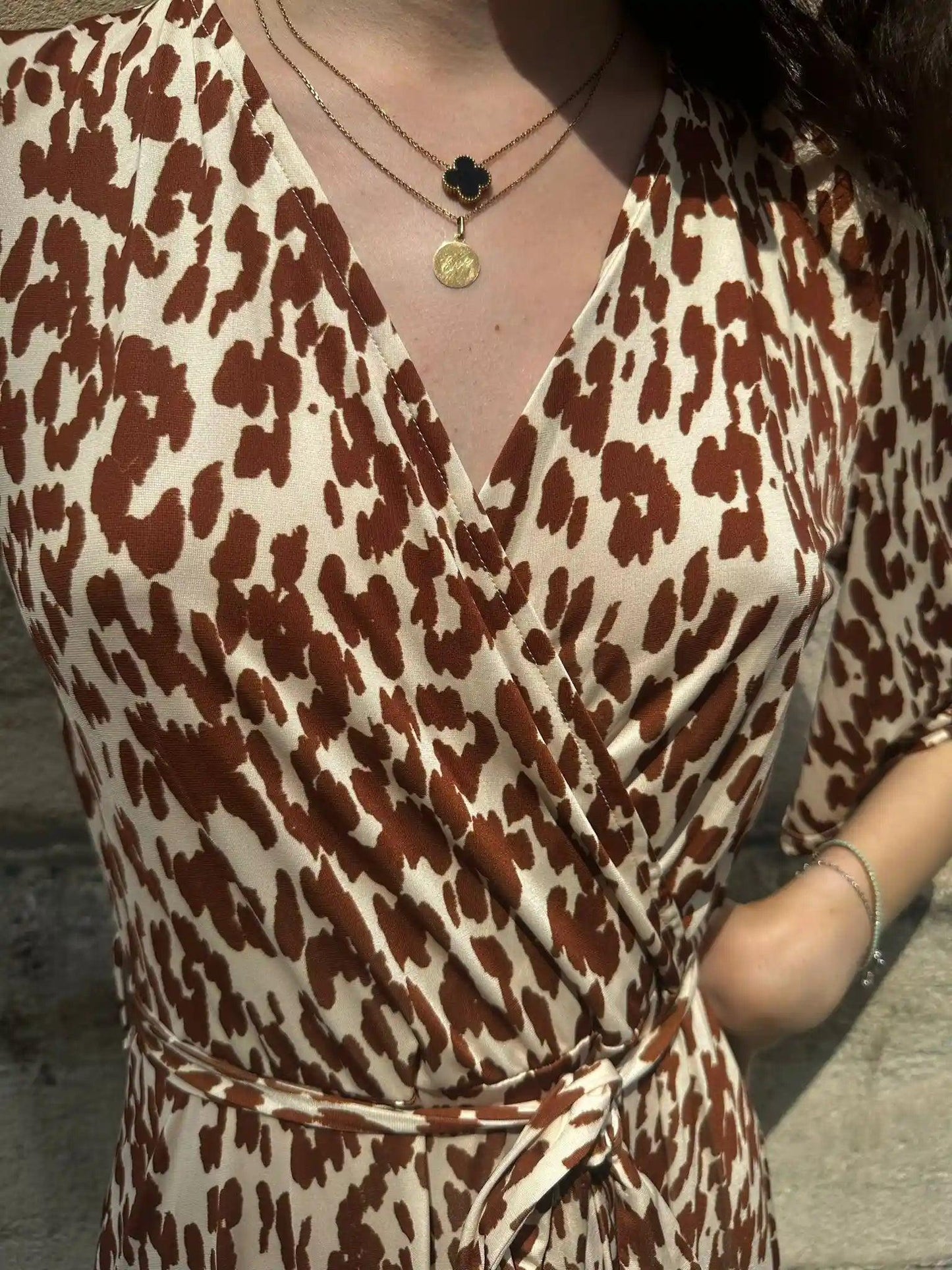 Robe Longue Rosas Blanche Panthère Marron - EGERIE