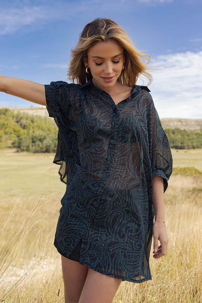 Short and loose shirt dress in voile, to wear as a light dress or layered for a casual style.