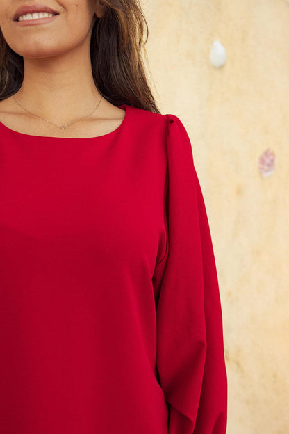 This dress is a real asset to any wardrobe. Its bold red hue and timeless design make it a versatile piece that can be styled in multiple ways. Add a belt to accentuate your waist or wear it with a blazer for a professional touch.