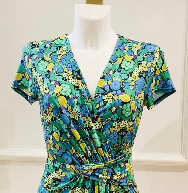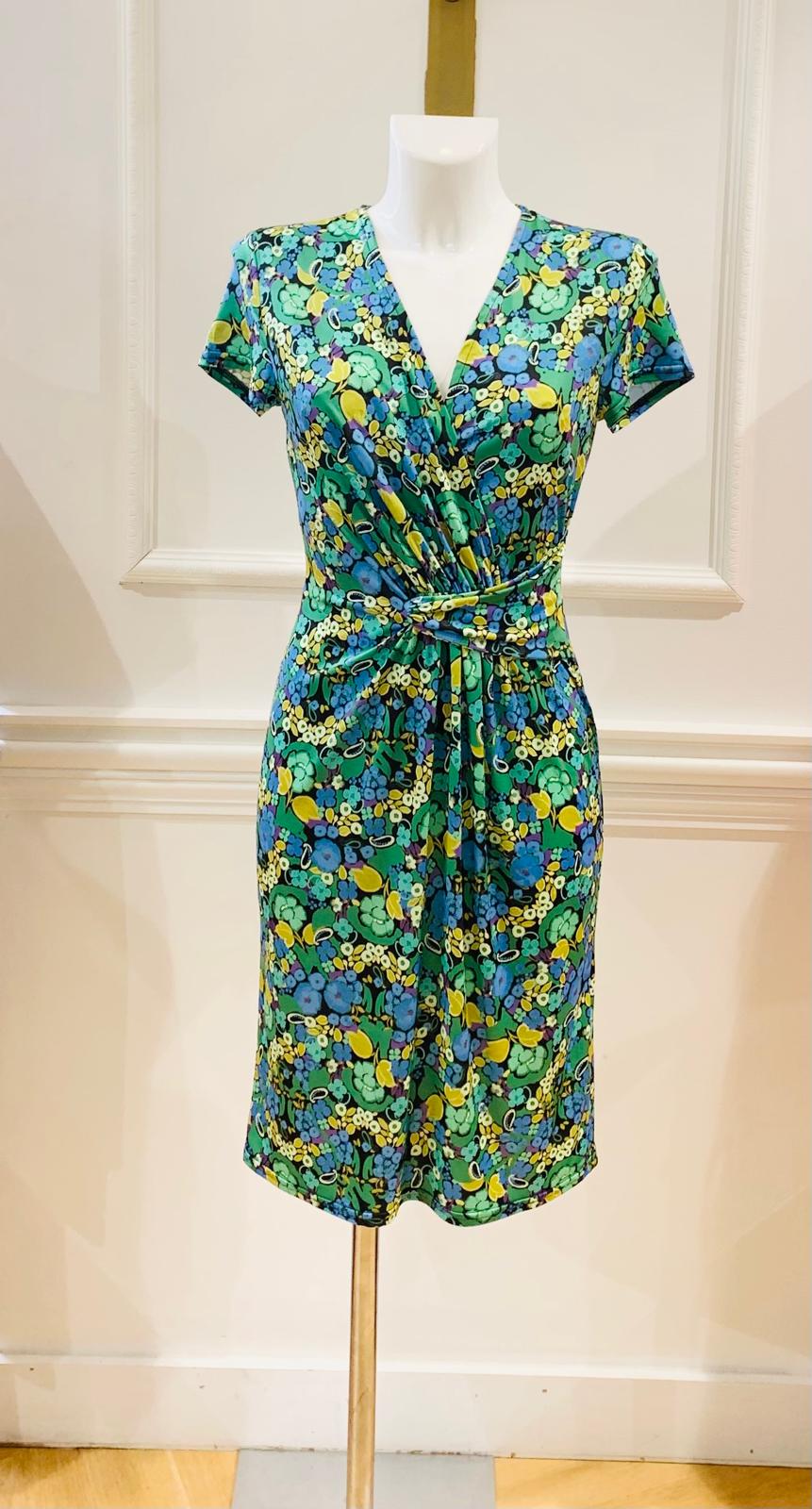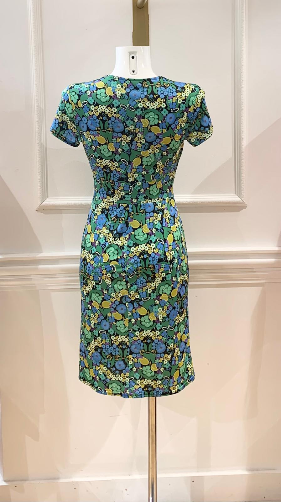 Robe Courte Jaden Verte Petites Fleurs Jaunes & Bleues