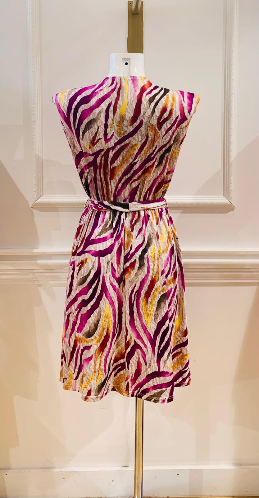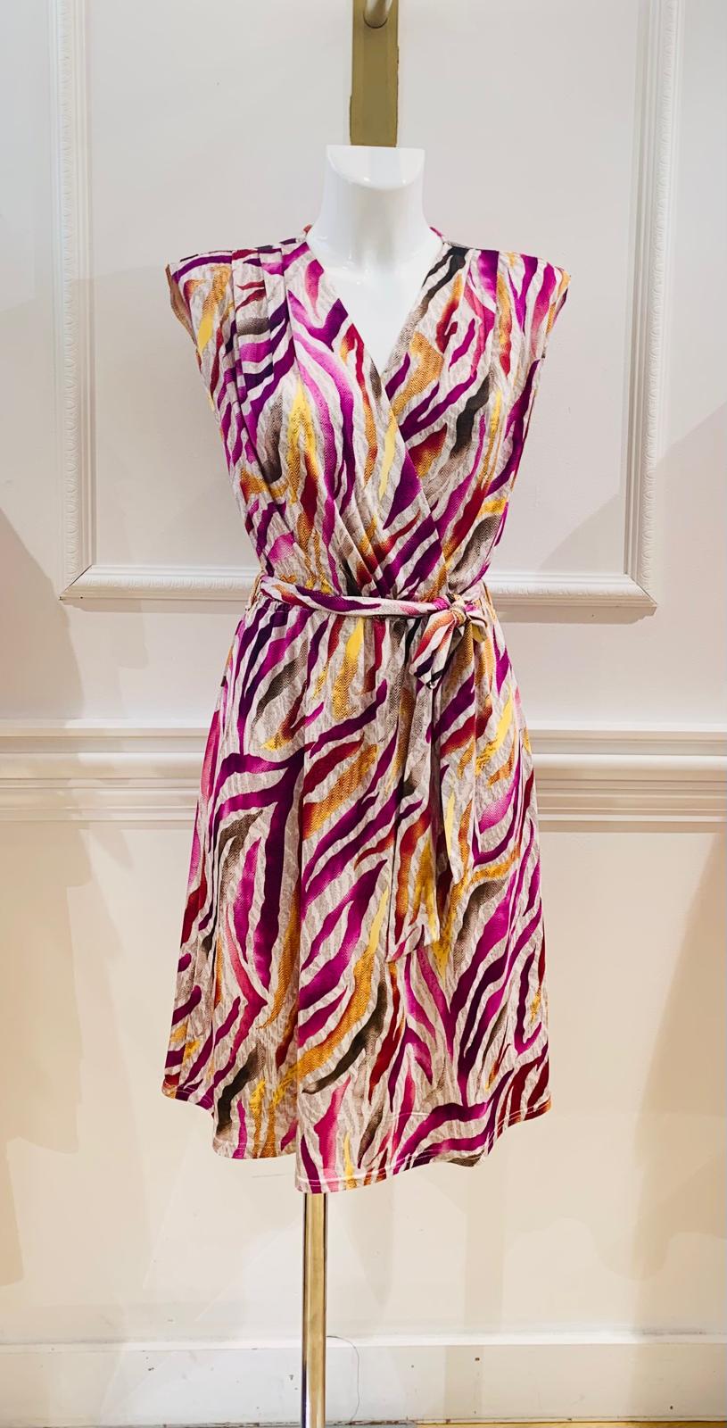 Robe Courte Soa Écru Zébrée Rose, Jaune & Marron