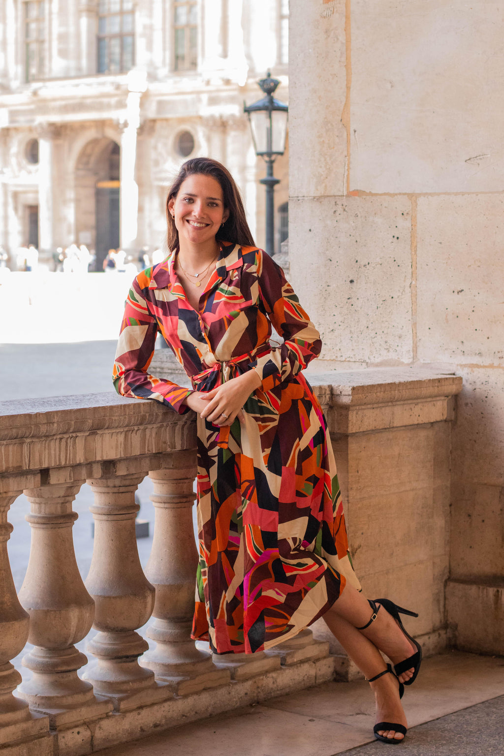 Révélez votre élégance à la française avec notre Robe Chemise Longue Bertina multicolore. Imaginée et fabriquée avec soin dans notre atelier parisien, cette robe incarne le mariage parfait entre le chic et la modernité.