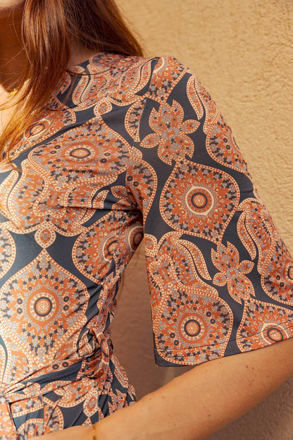 Son imprimé cachemire aux couleurs automnales, apporte singularité à ce modèle casual.