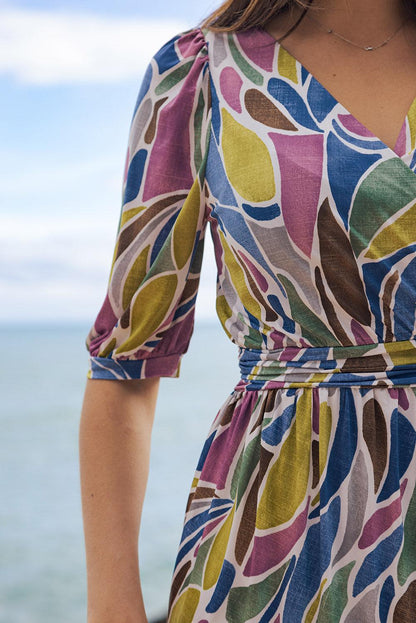 Robe courte Cassandre imprimé Anis & Turquoise