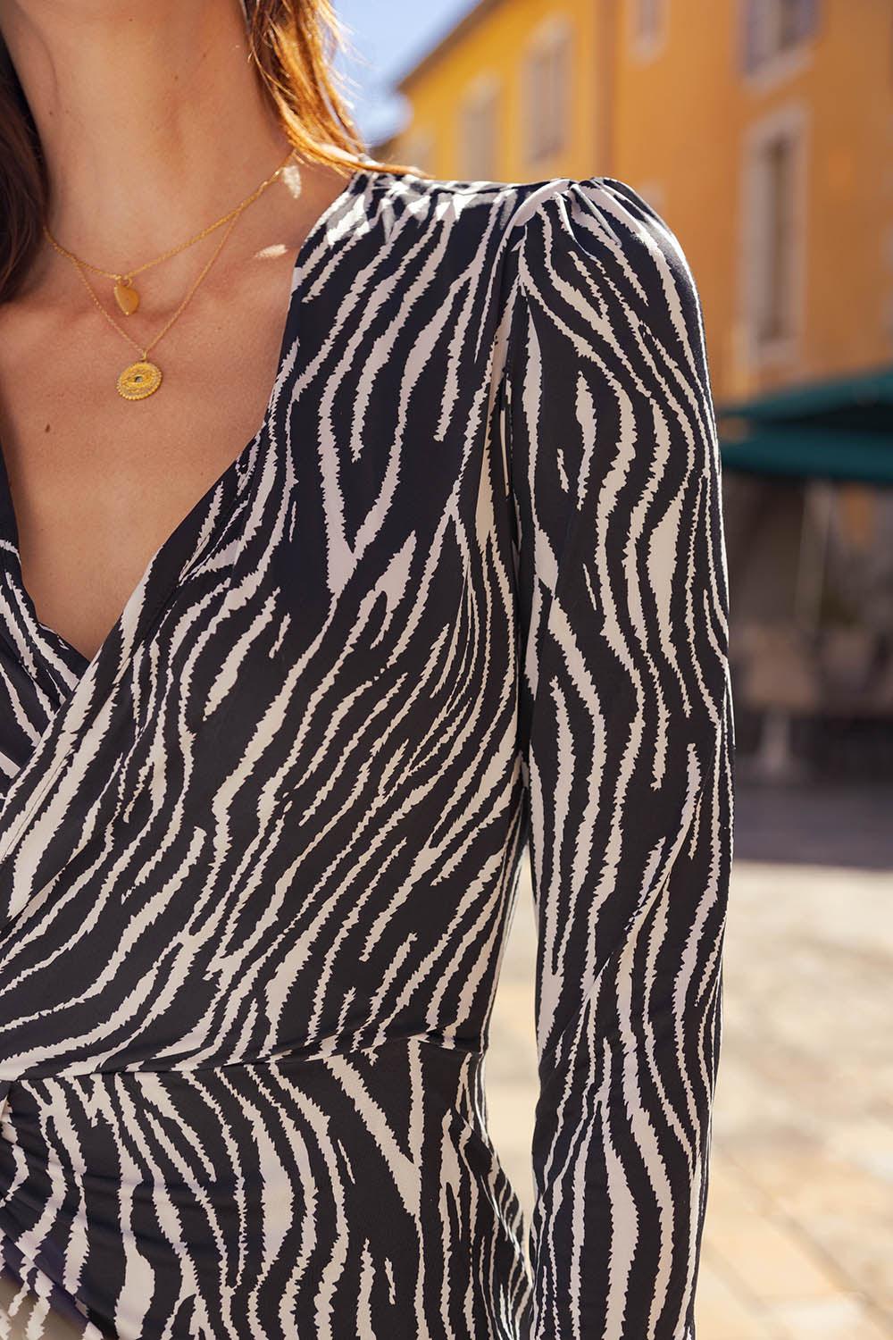 Robe courte cache-cœur Elite imprimé zèbre