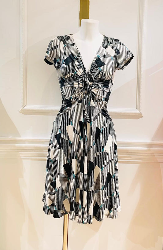 SaldoRobe Courte Soa Blanche Rétro Lignes Géométriques Noires