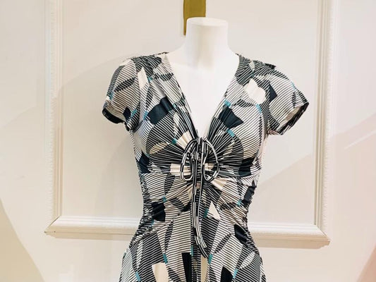 €89,00€71,20Robe Courte Soa Blanche Rétro Lignes Géométriques Noires