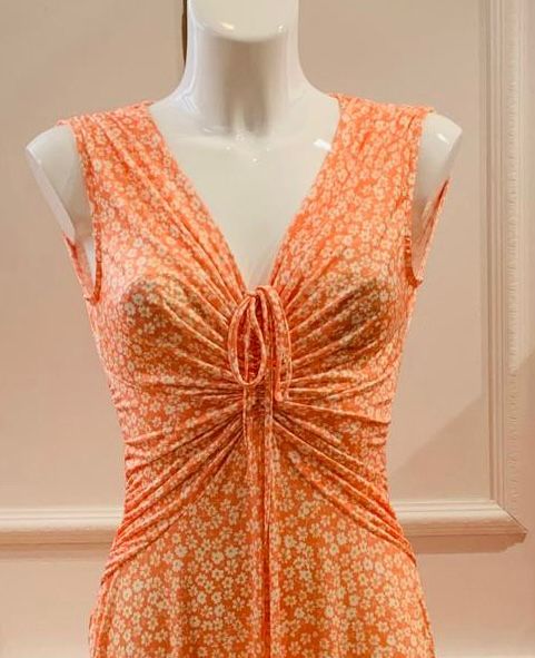 €89,00€71,20Robe Longue Romy Sans Manches Orange À Fleurs Blanches