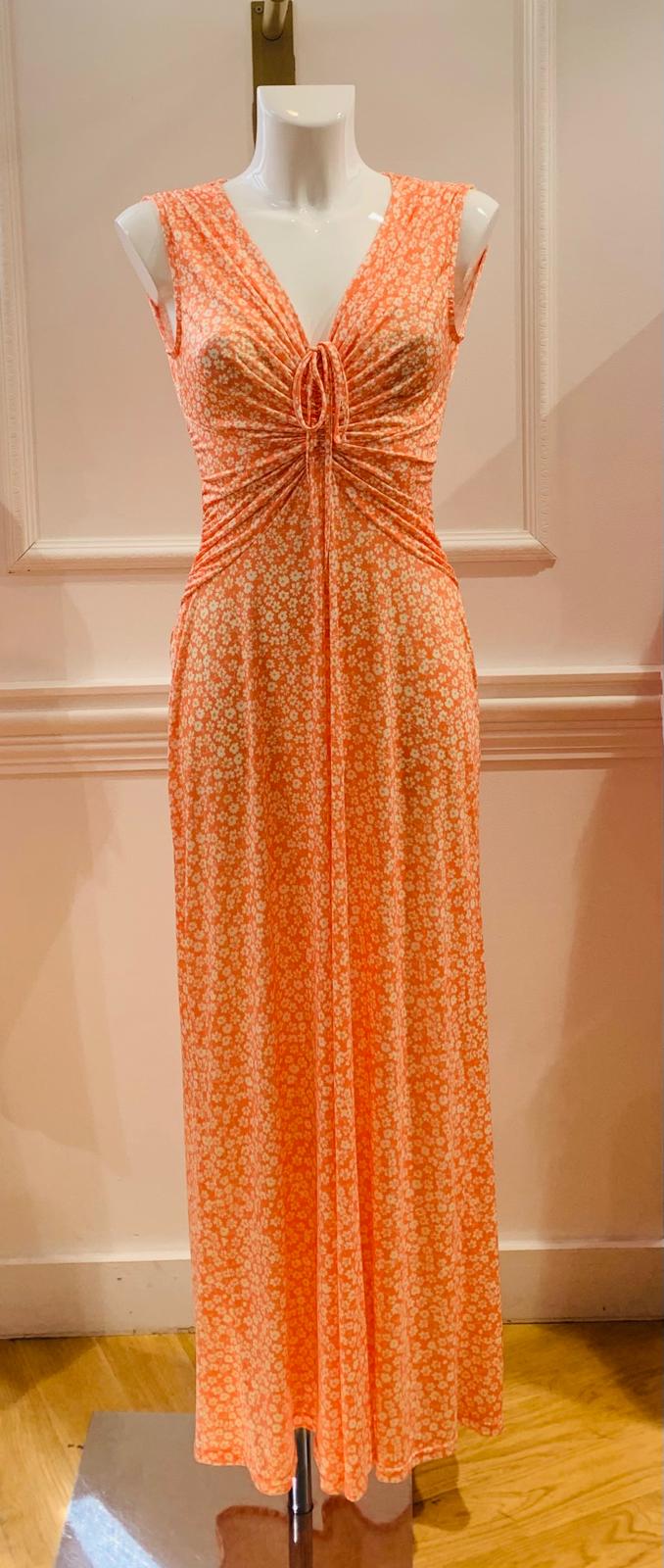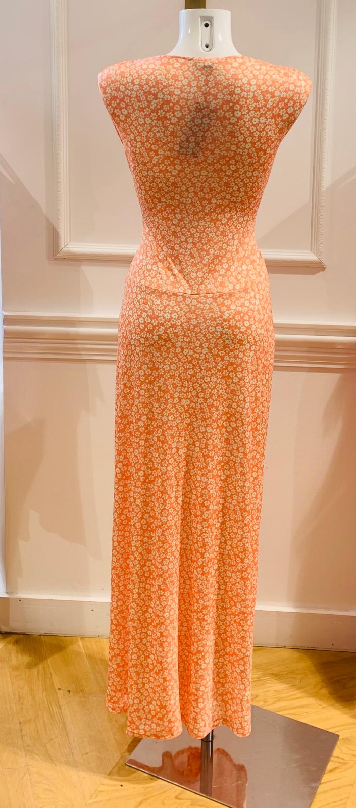 SaldoRobe Longue Romy Sans Manches Orange À Fleurs Blanches
