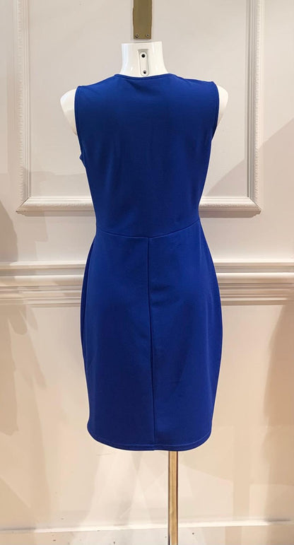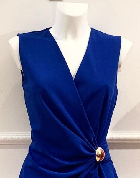 Sa coupe portefeuille fluide met en valeur la taille grâce à un joli bouton doré latéral, rappelant les drapés antiques. Le col V et le tissu maille léger font de cette robe une alliée parfaite pour l'été.