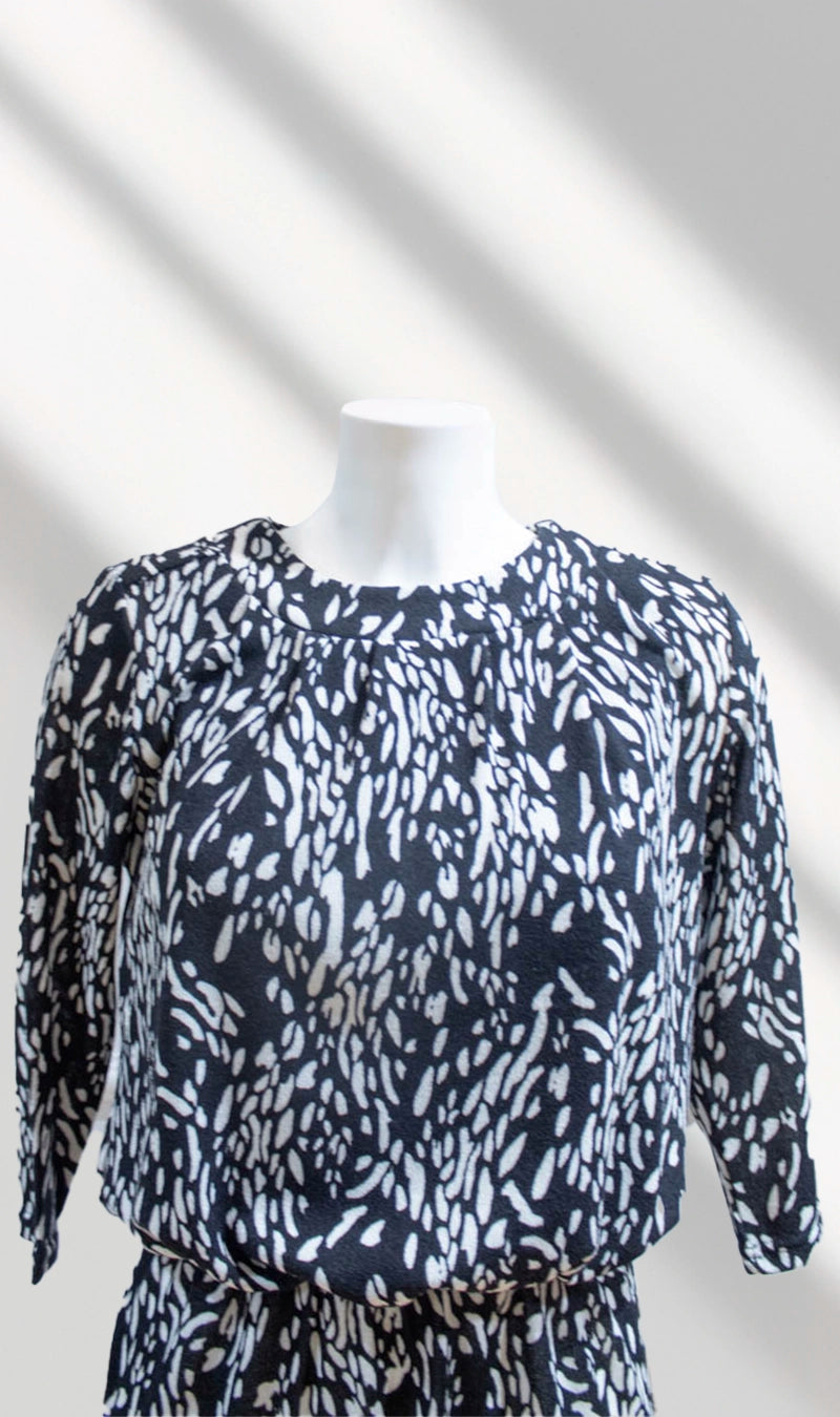 Grâce à ses imprimés minimalistes et son design travaillé dans les moindres détails, cette robe incarne l’esprit de la mode française : élégance, créativité et qualité. Une pièce indispensable pour briller avec simplicité et raffinement, où que vous soyez.