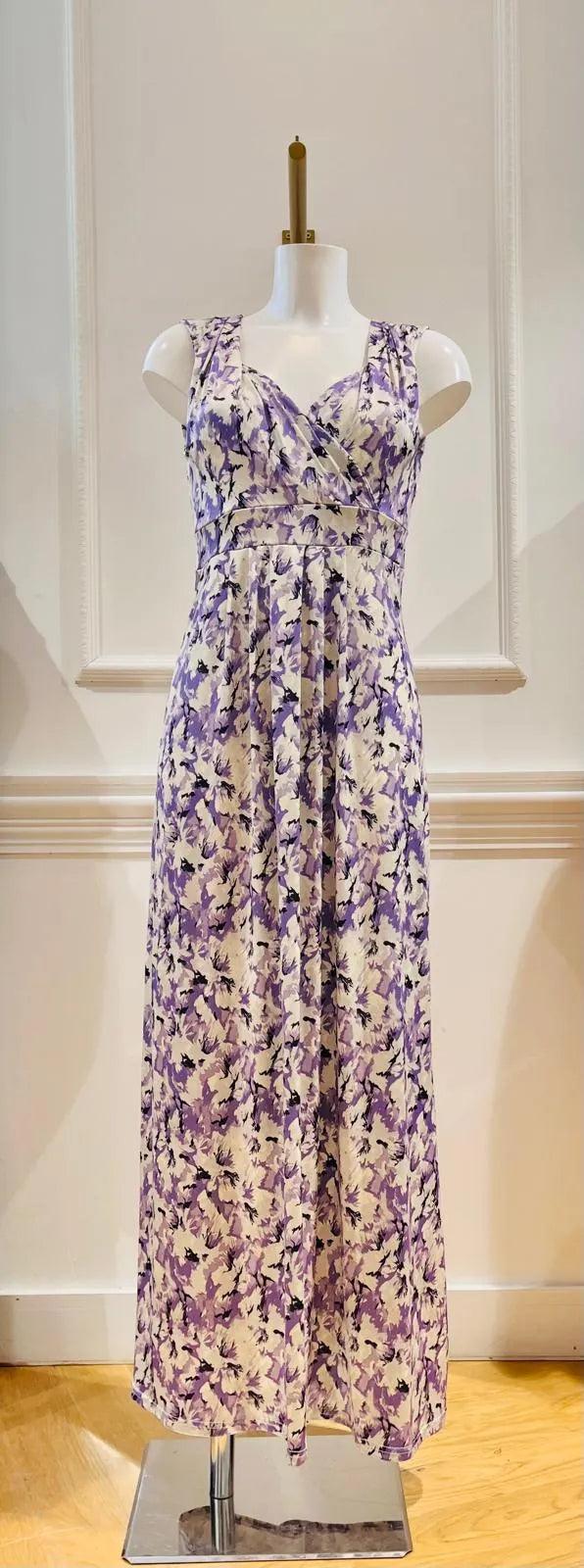 Découvrez notre ravissante robe longue Eternity Blanche Tâches Violettes. Avec sa coupe ample à la longueur cheville, elle est idéale à porter l'été pour aller dîner lors de vos soirées estivales ou pour une cérémonie en extérieure.