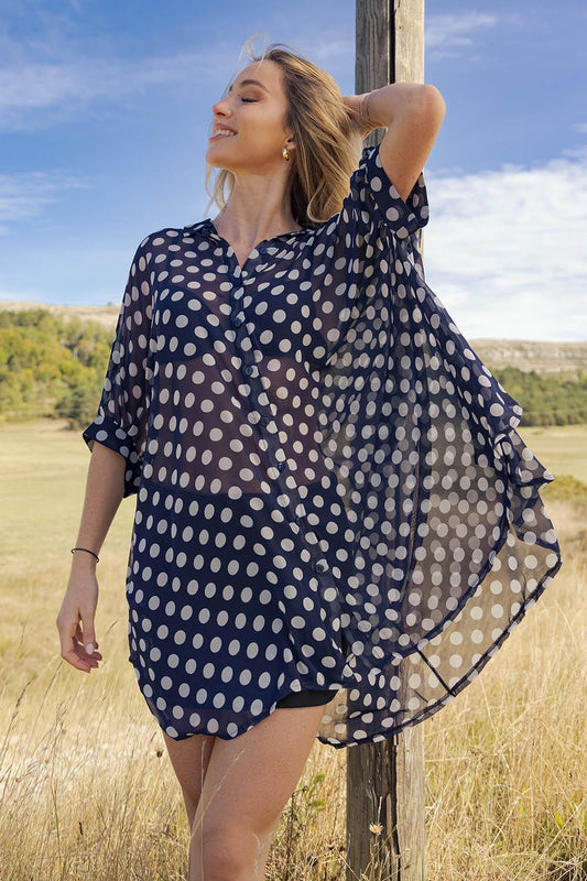 ReaRobe Chemise Courte Pétale Bleue Big Dots