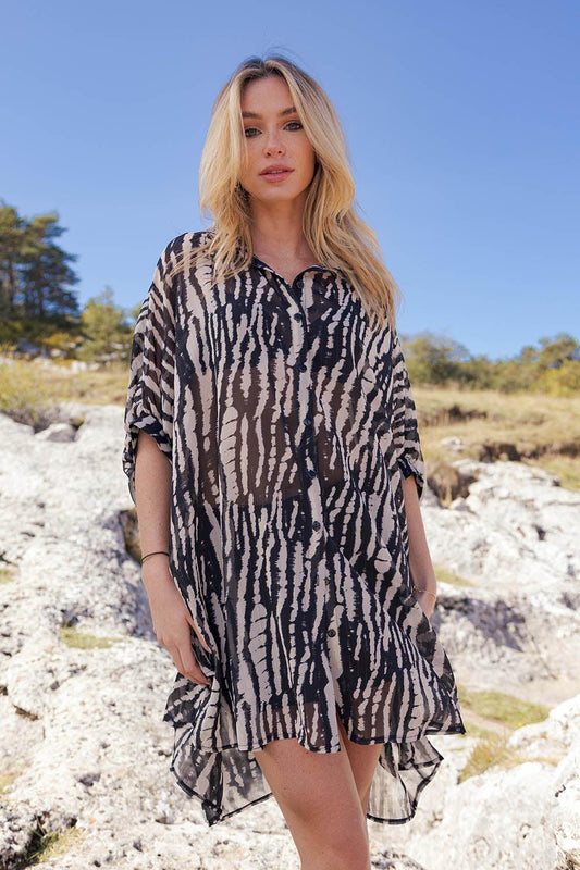 Robe Chemise Courte Imamie Kaki Zébré
