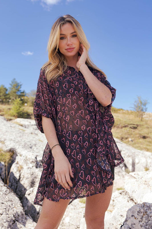 ReaRobe Chemise Courte Pétale Noire Flowers