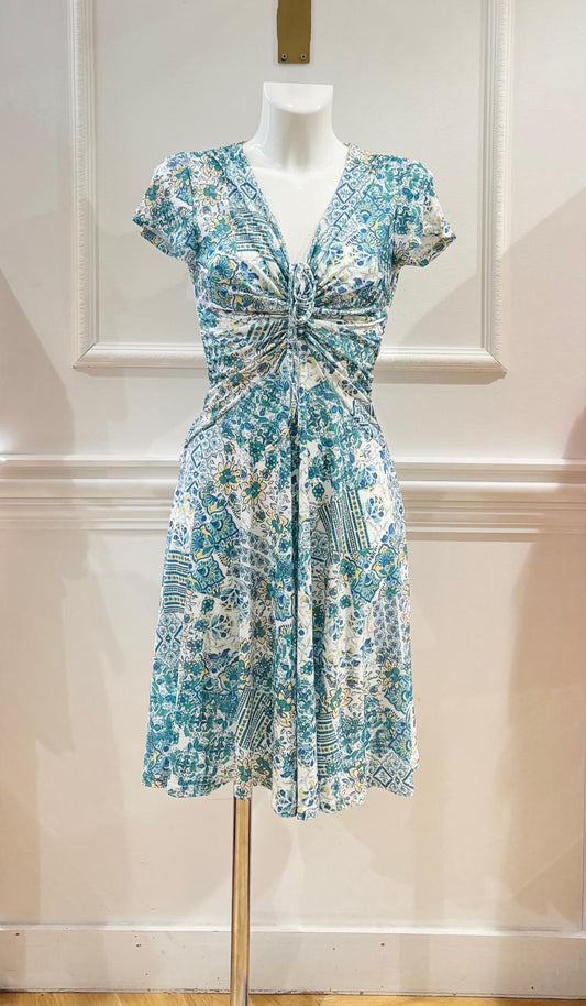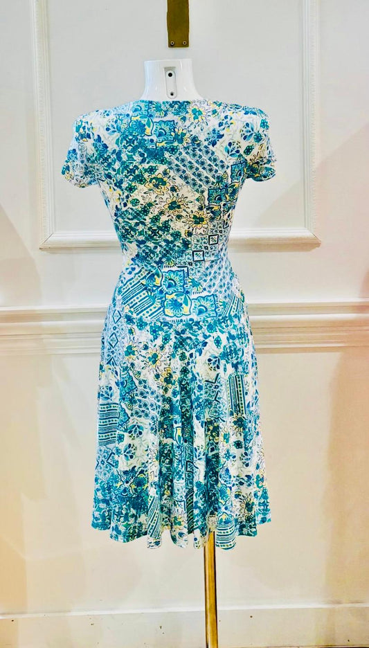 ReaRobe Courte Soa Bleu Cachemire Fleurs Aztèques Blanches