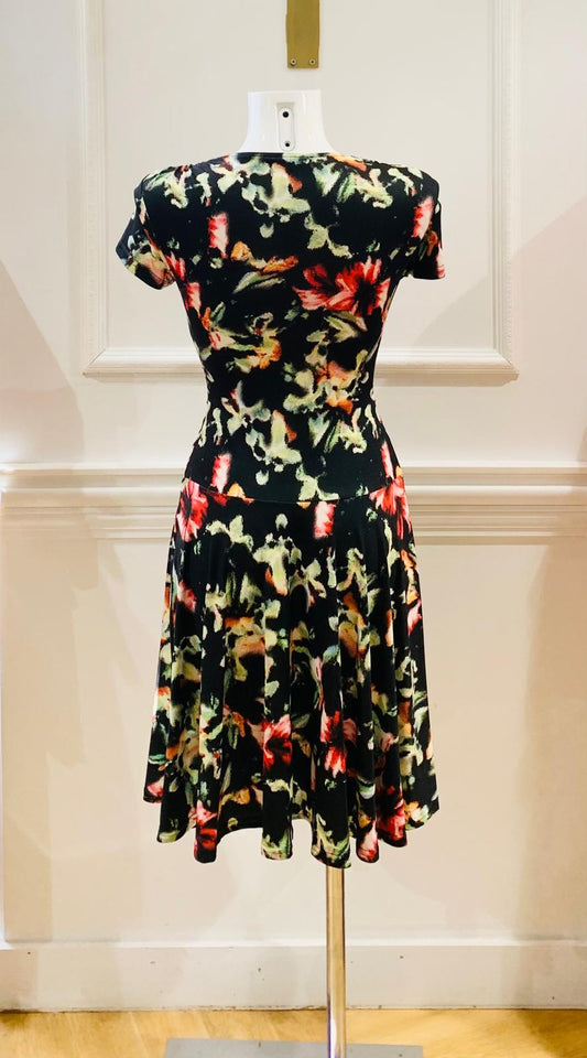 ReaRobe Courte Kylie Noire Fleurs Écrues