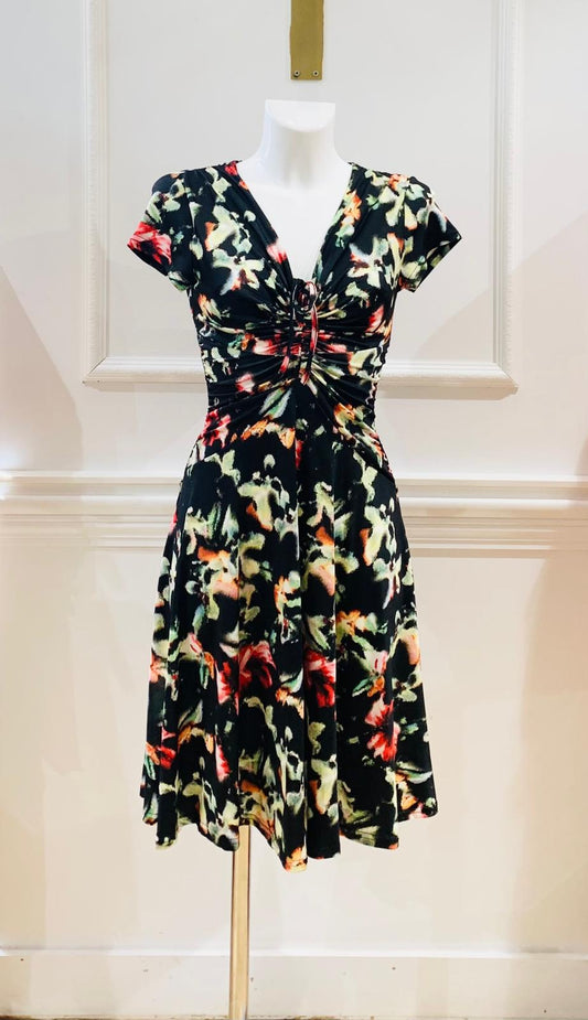 ReaRobe Courte Kylie Noire Fleurs Marines