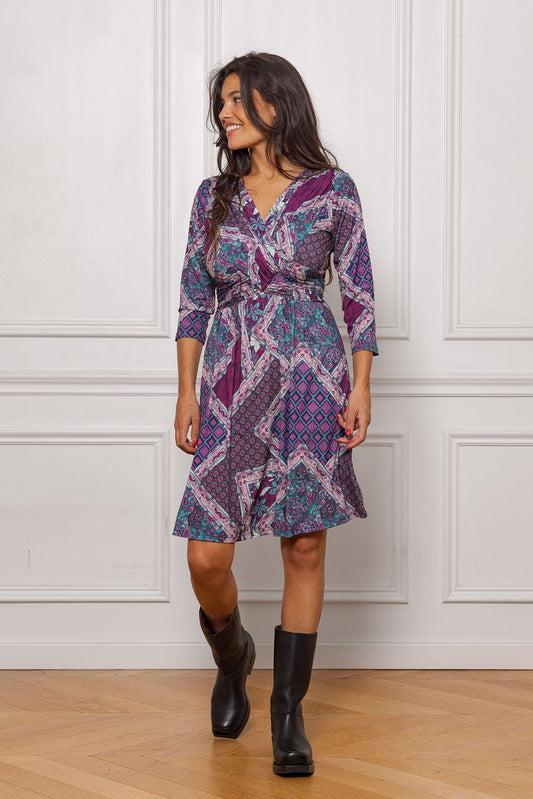 ReaRobe Courte Alabama Violette & Rose À Fleurs