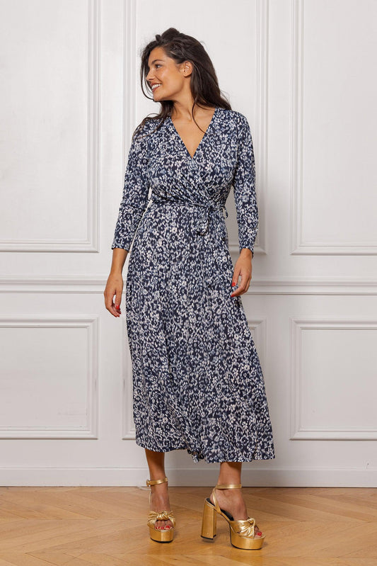 ReaRobe Longue Rosas Bleu Marine Cachemire