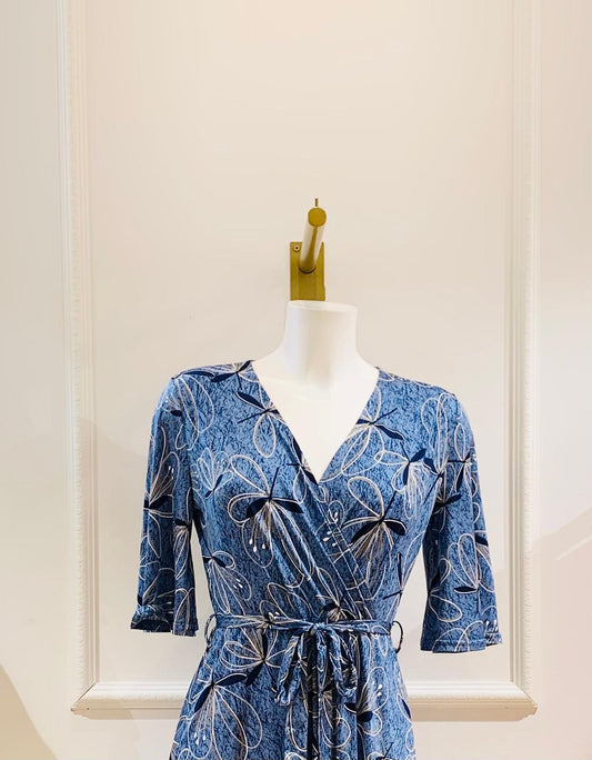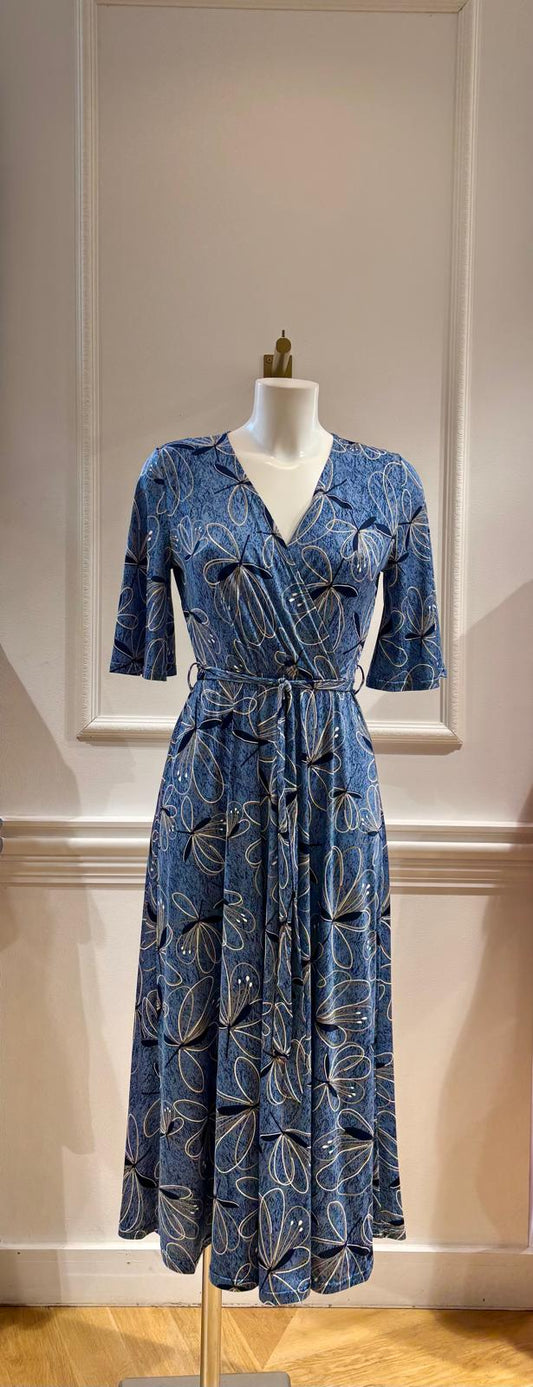 ReaRobe Longue Sila Bleue Fleurs Aztèques Blanches