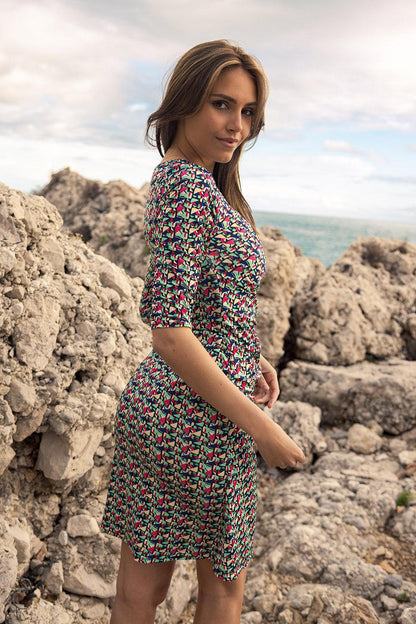 Ravissante robe courte à la longueur genou et au col V cache cœur mettant en valeur votre décolleté.