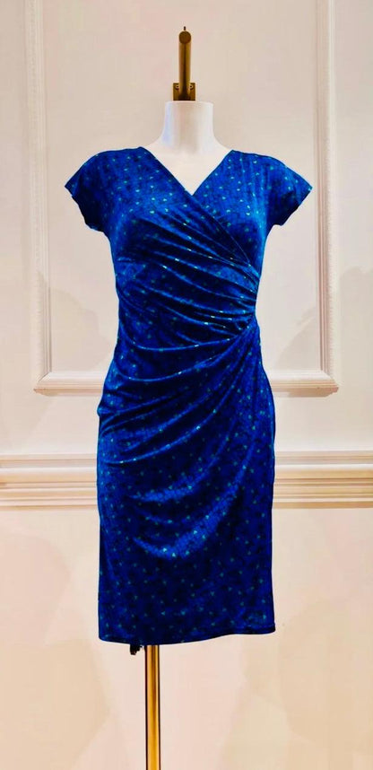 Découvrez notre ravissante robe courte Anael aux motifs à pois sur fond blanc à la longueur genou et au col V cache cœur mettant en valeur votre décolleté.