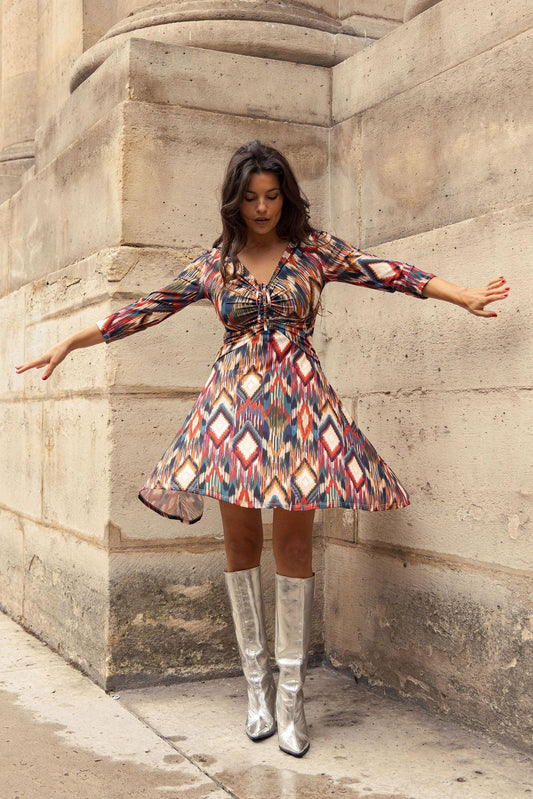 €69,00€55,20Robe courte Anael Choco imprimé Losanges Multicolores